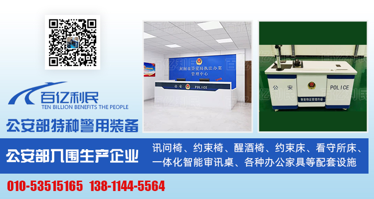 主要產(chǎn)品:訊問(wèn)椅、約束椅、醒酒椅、約束床、看守所床、一體化智能審訊桌、各種辦公家具等配套設(shè)施,專(zhuān)業(yè)服務(wù)于國(guó)家辦案中心,十年誠(chéng)信品牌!公司引進(jìn)先進(jìn)生產(chǎn)設(shè)備、技術(shù),精良的制作工藝、以及優(yōu)秀的研發(fā)、設(shè)計(jì)人才,賦予了公司產(chǎn)品的精致和內(nèi)涵。保證提供的產(chǎn)品皆為符合國(guó)家標(biāo)準(zhǔn)的合格產(chǎn)品,符合國(guó)家及行業(yè)安全質(zhì)量標(biāo)準(zhǔn),保證提供的產(chǎn)品是全新的一流工藝和材料制造而成。